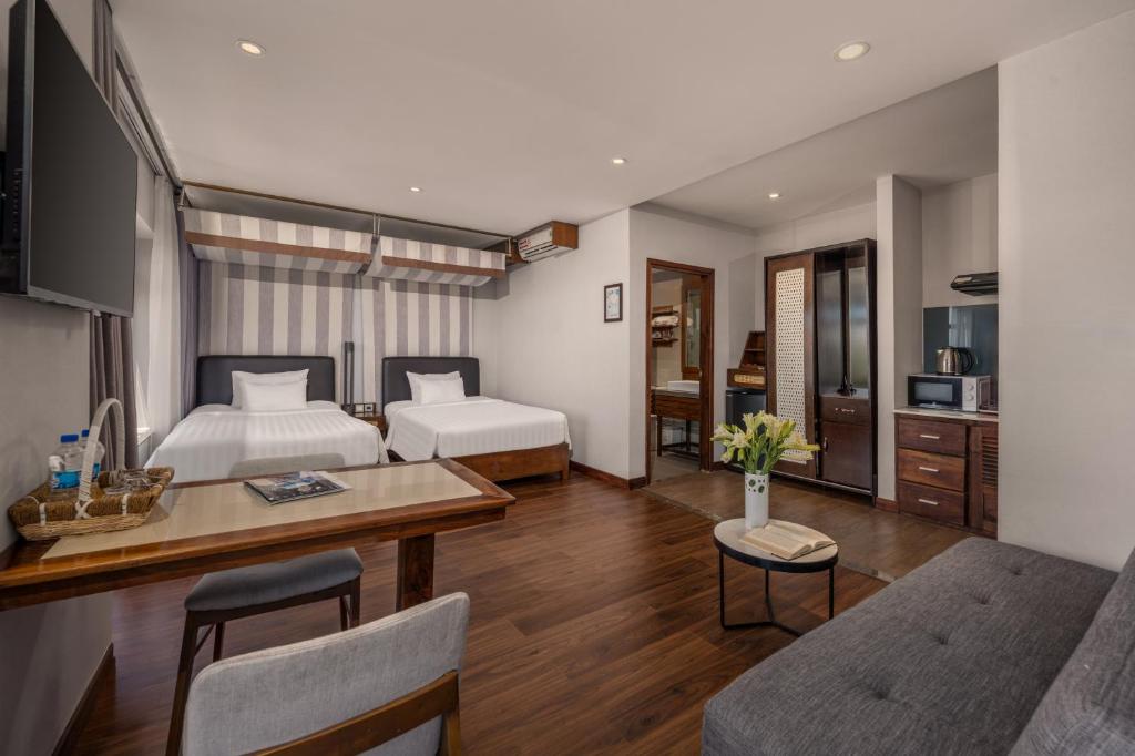 Ocean Front Hotel offers a relaxing beachside stay in Hoi An, perfect for travelers seeking comfort, convenience, and seaside views. Located directly opposite Cửa Đại Beach, this charming boutique hotel provides easy access to sandy shores and is only a short ride from the famous Hoi An Ancient Town, making it an ideal base for exploring both beach and culture during your visit.